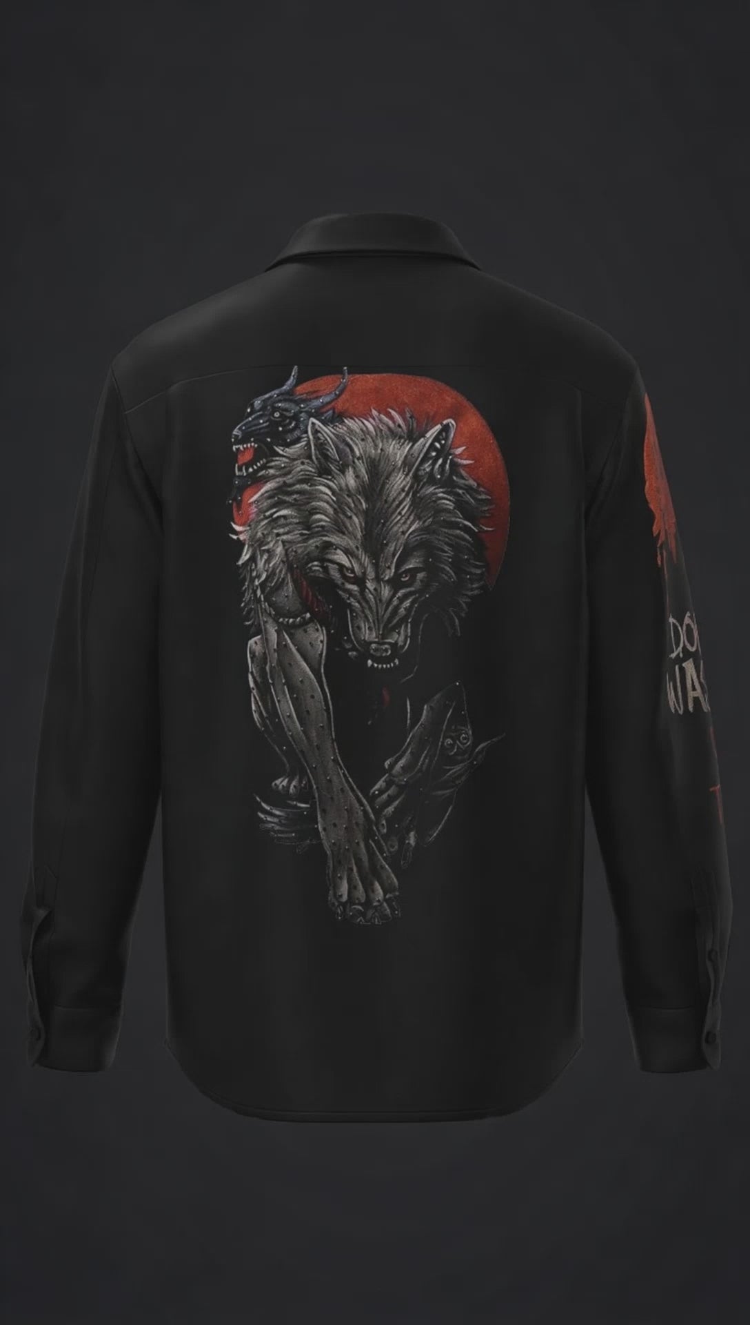 Hand-Painted “Lunar Beast” Black Shirt – Fierce Wolf & Dragon Art